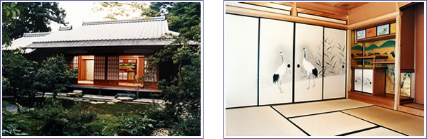 The house mainly comprises three tearooms, a Buddhist altar room, and a water room.